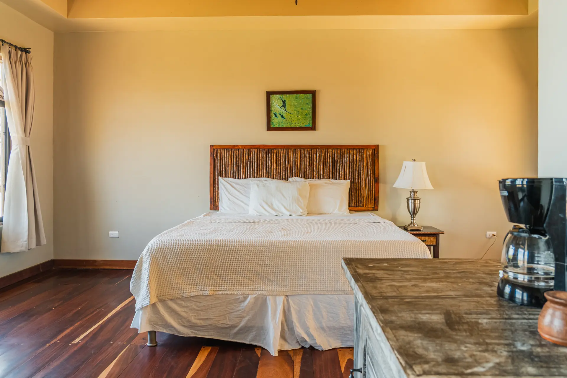 The King Standard Room with Garden View is a comfortable and tranquil option for couples or solo travelers. Featuring a king-size bed and garden views, it offers a calm and intimate space surrounded by tropical greenery.